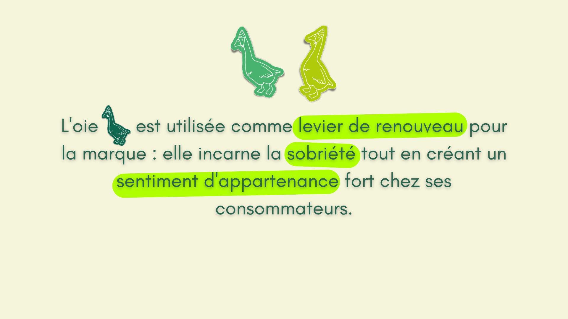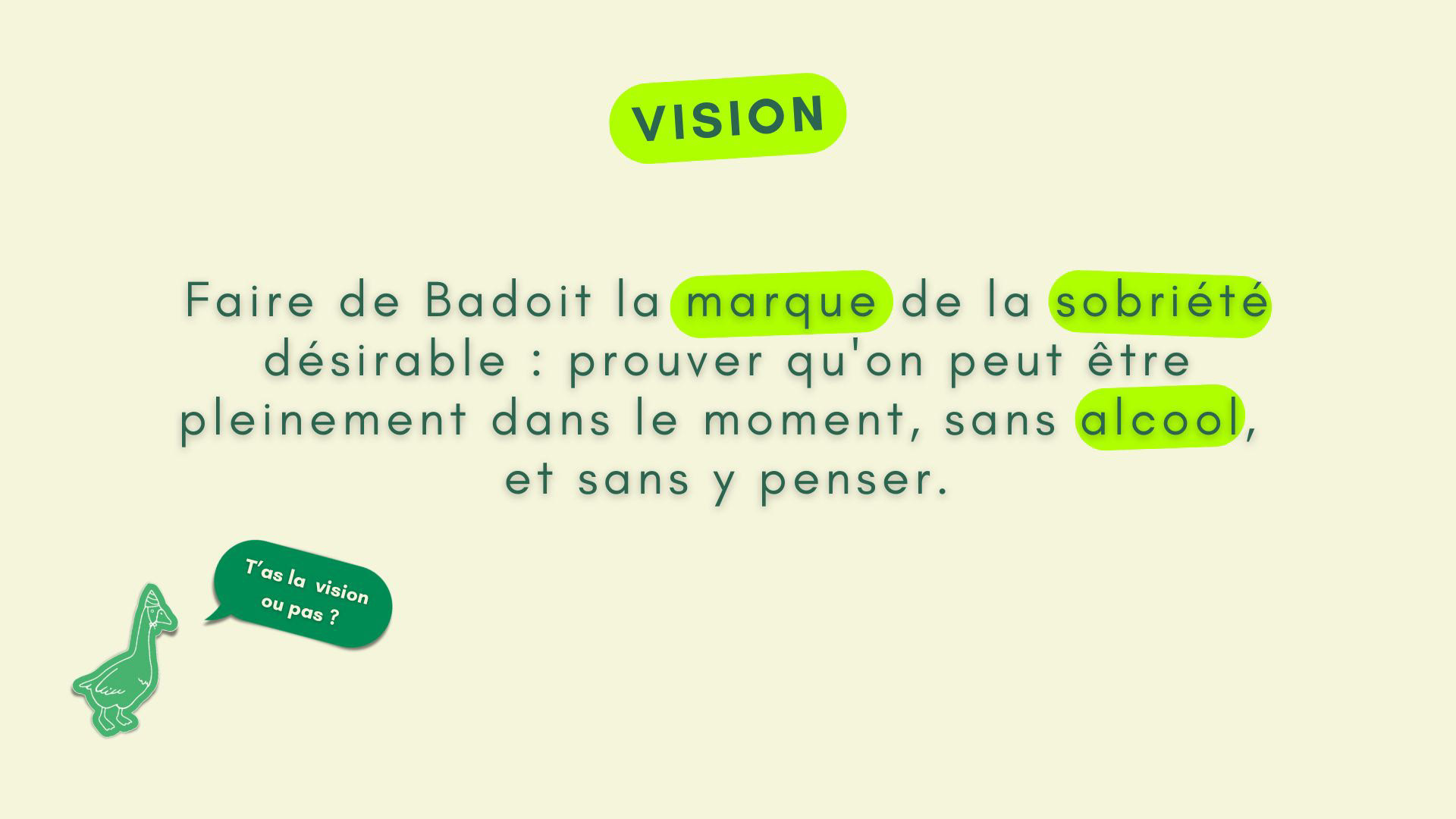 Basé sur le constat fort que la Gen Z consomme 7 à 8 fois moins d'alcool que les générations des années 60-70 , ce rebranding de Badoit positionne la marque comme la nouvelle référence de la "sobriété désirable". L'objectif est de transformer cette eau historique, présente depuis 1778 , en un soft drink premium incontournable pour les moments festifs et nocturnes où l'alcool était jusqu'ici la seule option. Cette identité "Purement Sobre" s'appuie sur des valeurs de pureté et d'authenticité , incarnées visuellement par la typographie ronde Caraque et une palette vibrante de vert émeraude, symbole de prestige. Le renouveau de la marque est porté par l'emblème de l'oie, qui apporte une touche d'humour tout en créant un sentiment d'appartenance fort chez les consommateurs.